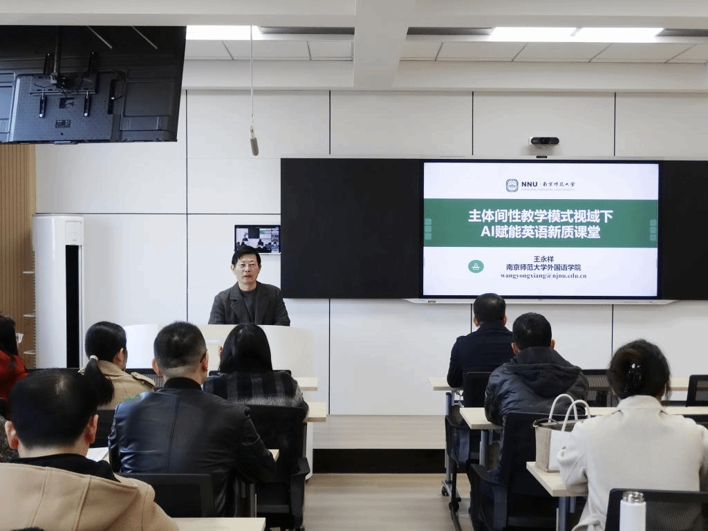 近日,德赢官网邀请南京师范大学德赢ac米兰官方合作院长王永祥教授莅临德赢官网指导,并进行了一场以“主体间性教学模式视域下AI赋能英语新质课堂”为主题的学术讲座。全院60多名老师参加了讲座,现场气氛热烈,学术氛围浓厚。