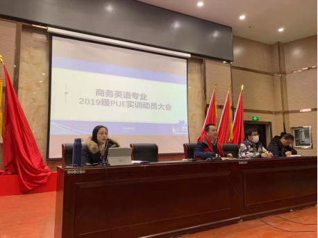 12月29日下午,德赢官网在香远楼报告厅召开2019级商务英语专业学生PUE实训动员大会。副院长王伟、商务英语教研室、学生科和教务科相关负责人以及该年级辅导员和各班班主任参加了会议。