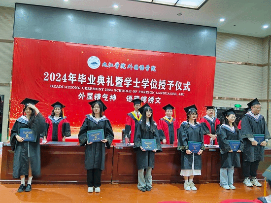 王伟副院长宣读了2024届毕业生名单,项莉副院长宣读了2024届授予学士学位学生名单,江山副书记宣读了2024届优秀毕业生名单。