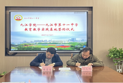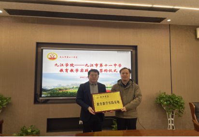 11月16日上午,德赢winac米兰与九江市第十一中学共建教育教学实践基地签约挂牌仪式在九江市第十一中学隆重举行。德赢ac米兰官方合作院长周志高、副院长王伟、项莉一行六人与九江市第十一中党总支书记王文明、副校长吴胜平、余忠庚参加了签约仪式。