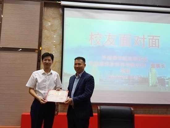 本次“校友面对面”活动邀请了德赢ac米兰官方合作2001届优秀校友李峰出席,查振华副校长为校友李峰颁发“德赢ac米兰官方合作客座教授”聘书。李峰分享了他从初出茅庐做教师到敢打敢拼创业的经历。他以“奋斗是青春最基本的底色”告诉同学们,大学期间要学好专业知识,打好专业基础;提醒同学们要利用好就业创业各个平台,从身边的小事做起,敢于创新创业;结合自己在大学期间卖鞋的经历与同学们分享了自己的创业故事。