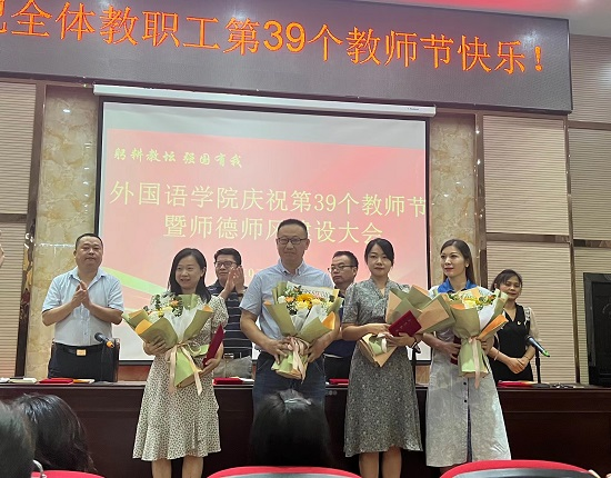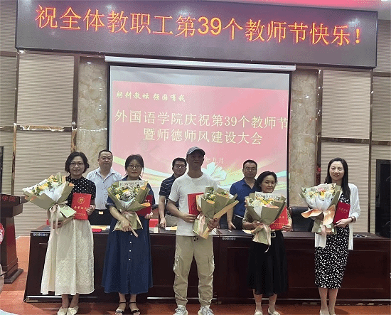 副院长项莉宣读了表彰决定和从教三十年教师名单。在欢乐的乐曲声中,与会领导为先进个人和集体颁奖,学生代表为获奖教师送上了鲜花。