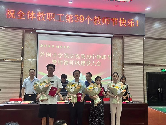 院长周志高代表学院党政班子向受表彰的先进个人和先进集体表示热烈的祝贺,向躬耕教坛三十年的老师表示衷心的感谢,向辛勤耕耘的全体教职员工致以节日的问候和崇高的敬意,向即将走向实习岗位的师范生致以美好的祝愿。周志高表示,“师者,人类文明之光的传递者”,希望大家以优秀教师为榜样,见贤思齐,真正做到学高为师、身正为范,勇于追求理想、甘为人梯,做好学生成长路上的引路人;希望师范生们虚心学习,努力增长知识才干、培养高尚的教育情操,让教育薪火生生不息。