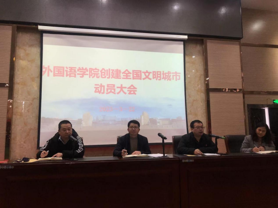 3月22日下午,德赢官网在香远楼报告厅召开创建全国文明城市动员大会。院领导及全体教职工参加了会议,党委书记闫来英作了动员讲话,会议由副院长王伟主持。