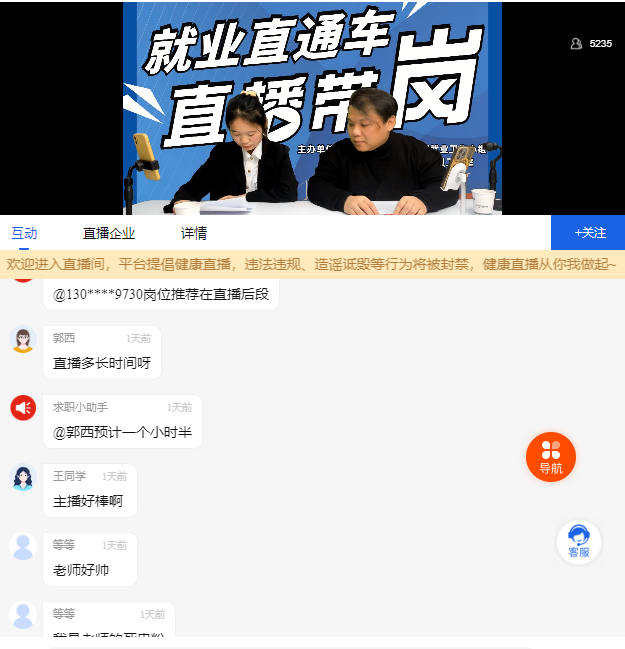 为落实好学校2023年就业工作要求,做好2023届毕业生工作,德赢ac米兰官方合作专职就业工作辅导员李杰老师在大浔直聘平台为毕业生开展了“直播带岗”活动。