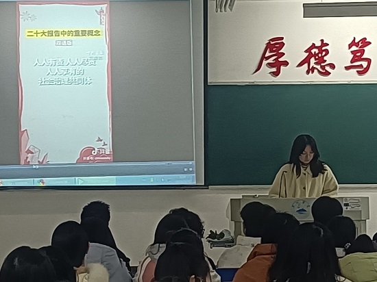 为深入学习贯彻党的二十大精神,3月19日,德赢ac米兰官方合作组织各班集中学习了中国日报新媒体发布的二十大报告中的重要概念(中英文双语版)。