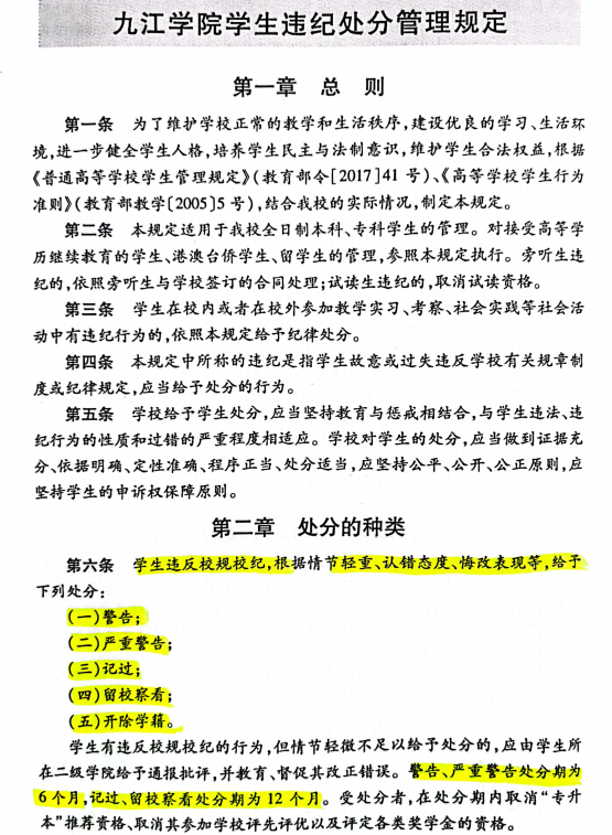 校规校纪专项教育由各班班长组织,各班同学在学生干部的带领下集中学习了《德赢winac米兰学生违纪处分管理规定》,详细学习了处分的种类、违纪行为及处分、处分的权限、处分的程序、处分的解除等内容。