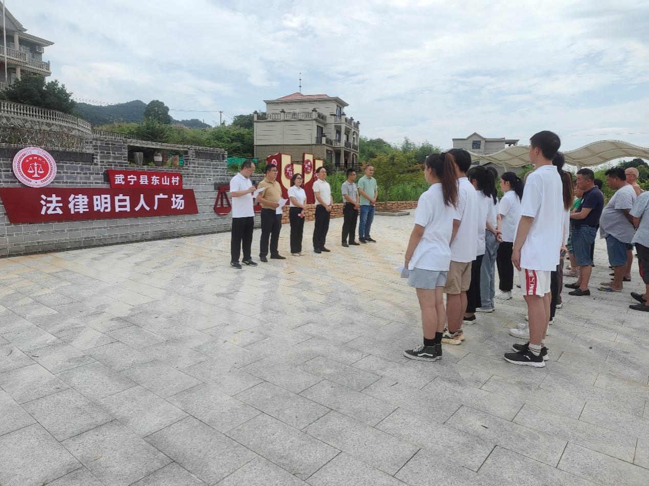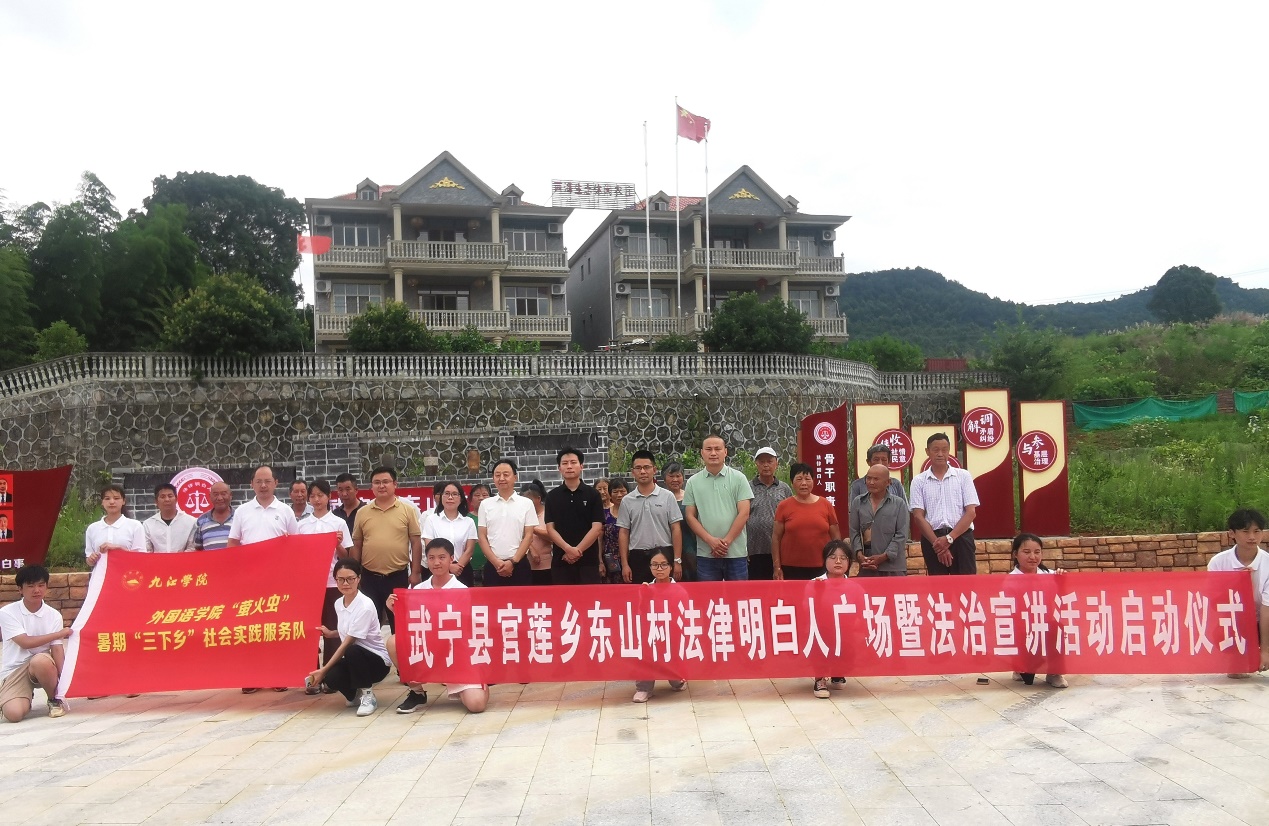 为贯彻落实习近平法治思想和以宪法为核心的社会主义法律体系,宣传与乡村老百姓生产生活相关的法律法规和政策。6月24日,德赢winac米兰暑期“三下乡”社会实践服务队的大学生们在九江市武宁县官莲乡东山村与当地村民共同见证“法律明白人”广场正式启用。