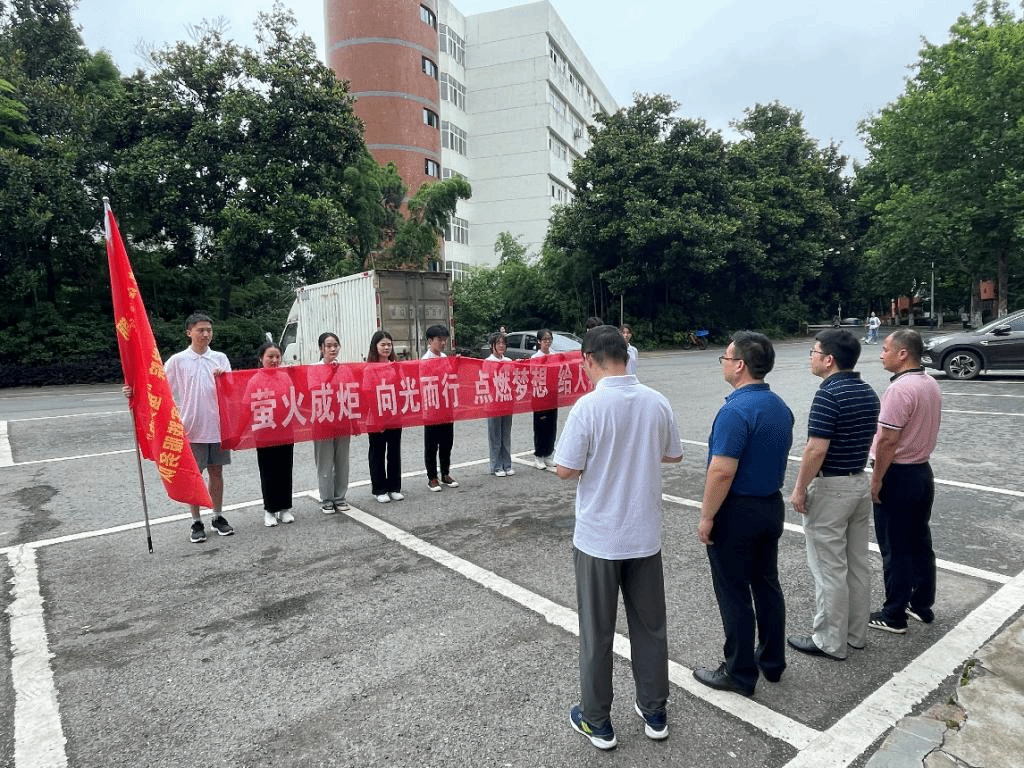 上午8点30分,本次活动出征仪式在学生活动中心广场举行。院长周志高、党委书记闫来英、党委副书记彭晓以及思政科科长江山出席此次仪式,全体“萤火虫”社会实践服务队队员参加。