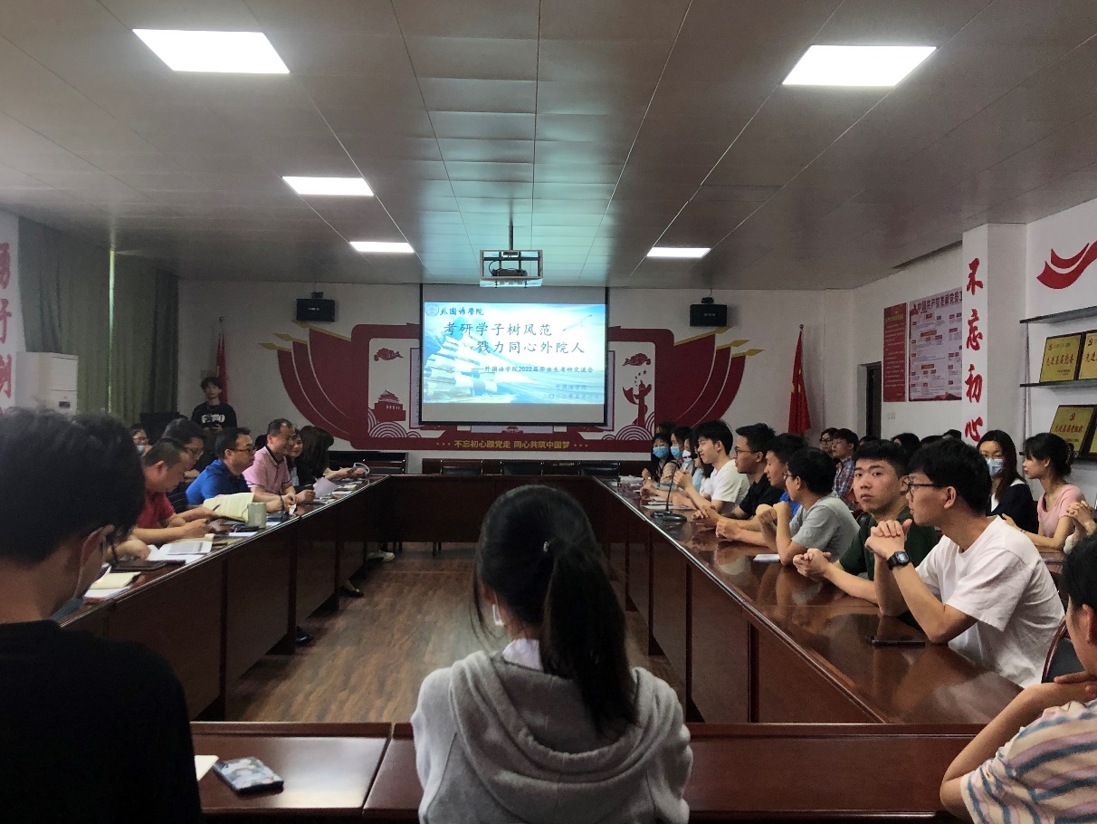 立夏时节,满眼绿意的九院,总是让人倍感温馨,这里处处洋溢着希望和温暖。在这个季节里,德赢ac米兰官方合作扎实推进党史学习教育,全心全意为学生办实事,坚持深化学风引领作用。5月6日上午9:40,学院在香远楼315会议室举办 “考研学子树风范,戮力同心外院人”2022届毕业生考研交流会。院长周志高,党委书记闫来英,党委副书记彭晓,副院长王伟、项莉出席,学院考研指导老师、学生科相关辅导员、研究生录取同学以及2019级考研学生代表现场参加会议。因疫情防控要求,本次分享采用线上、线下同步进行。