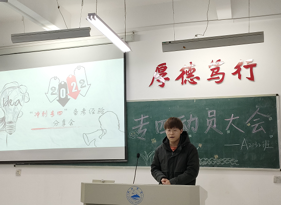 英语专业四级考试是既测试学生综合能力,也测试学生单项技能的专业性考试,是每一位英语专业学生必须经历的考验。为了加强德赢ac米兰官方合作大二学生对英语专四考试的重视程度,帮助学生们提高备考效率,鼓励他们以饱满的姿态投入到紧张的复习之中,3月20日,商务英语专业A2032班在香远楼424举办了“冲刺专四”备考经验分享会。