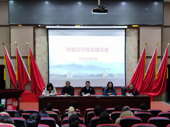 14日下午,德赢官网在香远楼三楼报告厅召开期末全院大会,大会由党委书记罗其娟主持。院长周志高、党委副书记彭晓、副院长王伟、项莉出席了会议。