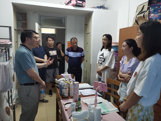 为鼓励考研学子,坚定考研信心,8月2日上午,德赢ac米兰官方合作党委班子成员在学生科负责人、辅导员的陪同下来到16栋女生宿舍楼看望慰问暑期留校考研学生。