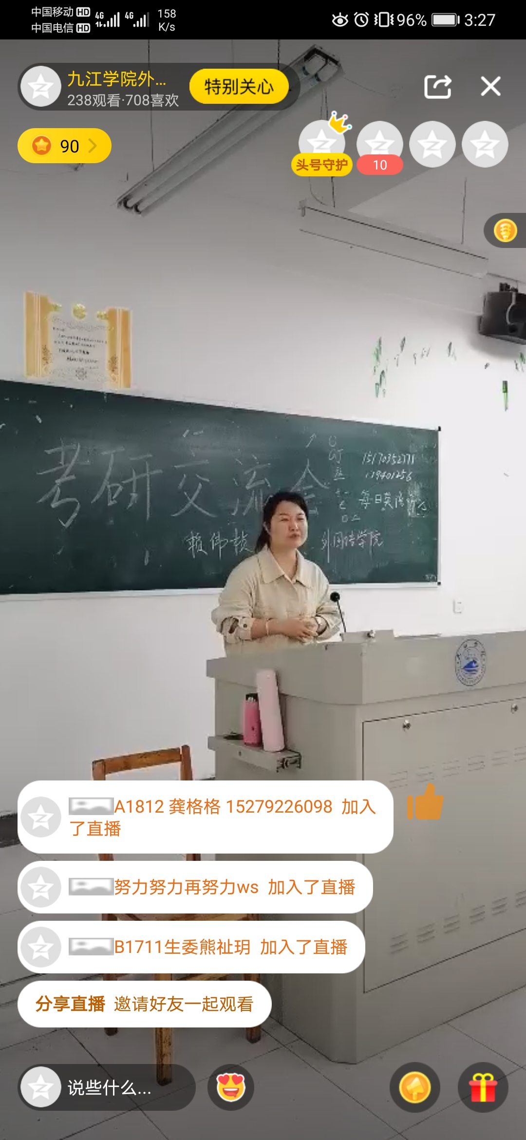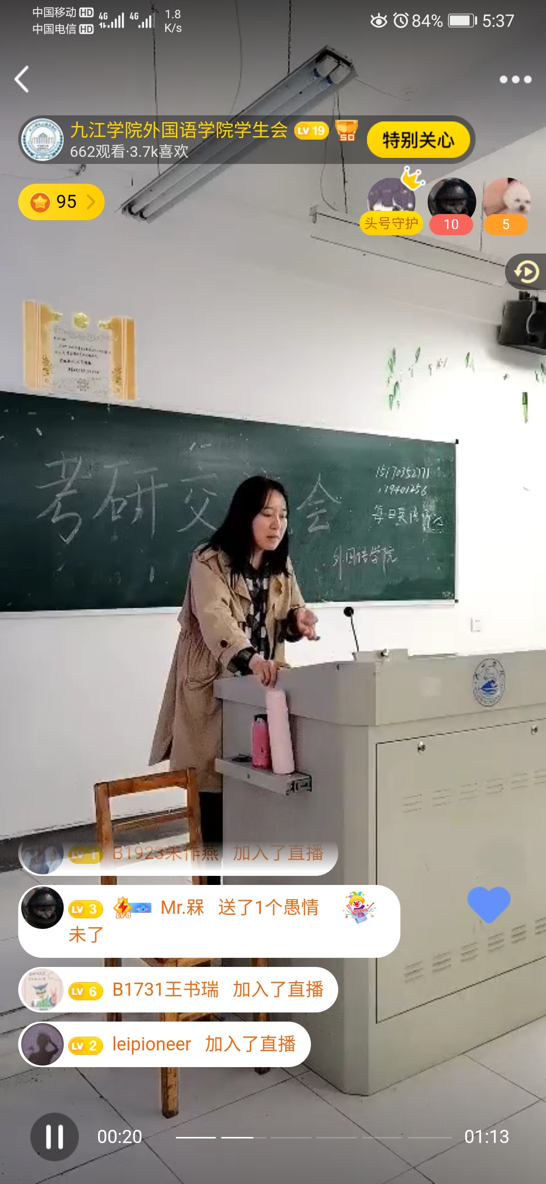 为落实党史学习教育有关工作安排和“我为师生办实事”实践活动要求,进一步加强学风建设,提高学生考研热情,德赢ac米兰官方合作于4月24日下午在香远楼306教室开展考研经验交流会,活动由A1911班姚思吟主持。本次考研交流采用了现场交流和线上直播的形式,线下有100余人现场参加,线上有近700人观看。