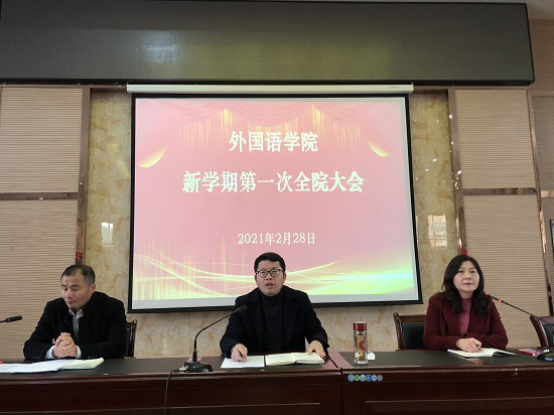2月28日,德赢官网在香远楼报告厅召开新学期第一次全院大会,学院全体教职工参会。会议由院党委书记罗其娟主持。