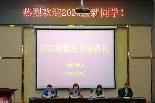 典礼上,韩琨院长致辞,对422名来自全国各地的新生,表示最热烈的欢迎和最诚挚的祝福,同时以外院院训“外显精气神,语藏锦绣文”激励各位新生要有刻苦学习的精神和顽强拼搏的毅力。韩琨院长就外院的师资力量、专业设置、教师教研成果以及校内设施和生源结构情况作出了简单的介绍。最后,韩院长希望2020级的外院学子通过自己的努力,提升自己的人生阅历,增强明辨是非的能力,在人生道路上谱写出新的篇章。