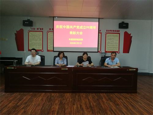党委书记罗其娟在表彰大会上带领全体党员集中学习了6月29日习近平总书记在中共中央政治局第二十一次集体学习上的重要讲话。罗其娟同志对全体党员提出了以下几点要求:一是向受表彰的的支部和党员同志们表示祝贺,希望他们继续努力,再创佳绩,并要求其他党员同志向先进个人和集体学习,在外院形成风清气正、争先创优的好局面。二是全体党员要进一步加强学习,坚定信念,不断增强“四个意识”,坚定“四个自信”,坚决做到“两个维护”,做讲政治,有信念;讲规矩,有纪律;将道德,有品行;讲奉献,有作为的“四讲四有”新时代合格党员,各支部要按照要求组织好学习,开展好各项活动,做到既有氛围又有实效。三是全体党员在学院的各项工作中应起到模范带头作用,努力工作,为学院的稳定和发展做出积极的贡献。