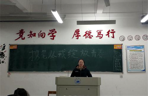 为落实德赢winac米兰《关于组织开展2020届的毕业生“携笔从戎、绽放青春”主题征兵宣传活动的通知》九院学字[2019]35号文件精神,为进一步激发2020届毕业生的参军报国热情,德赢ac米兰官方合作于12月1日晚在香远楼各毕业班晚点名教室开展了“携笔从戎、绽放青春”主题征兵宣传班会。
