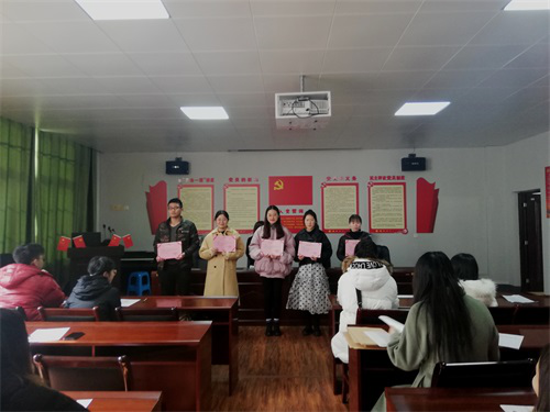 2019年12月2日下午,德赢ac米兰官方合作在香远楼315举行了党员入党宣誓仪式,院党委书记罗其娟出席了此次会议,全体学生预备党员共18人参加了会议,仪式由党建组织员王少斌主持。