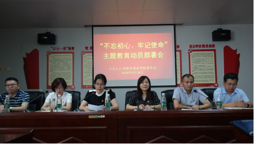 罗其娟书记在动员讲话中传达了学校“不忘初心,牢记使命”主题教育动员部署工作会议精神,对学院开好主题教育活动提了四点要求:一是自觉加强理论学习,牢固树立理想信念,全院党员同志要读原著、悟原理,认真学习党史、新中国史。二是做好调研方案,深入开展调查研究,领导班子要结合自己的实际工作,深入师生开展调研,倾听师生心声,解决师生的实际问题。三是深刻检视问题,找准自己的差距。四是抓好整改落实,全面落实主体责任,加强领导,确保各项整改落到实处。