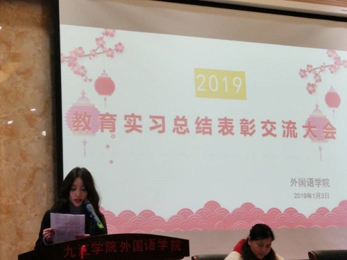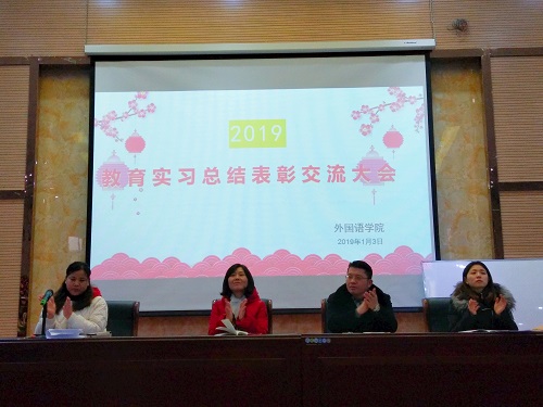在教务处和实验中心的大力支持和协助下,在广大师生共同努力下,德赢ac米兰官方合作2019届师范生教育实习工作圆满结束。学院于2019年1月3日下午在香远楼报告厅召开了师范生教育实习总结表彰交流大会。德赢ac米兰官方合作副院长罗其娟、副院长周志高、英语教研室负责人熊淑英、副主任赵宋文、教育实习带队教师、2019届英语专业师范实习生和2020届即将参加教育实习的学生参加了此次会议。会议由英语教研室负责人熊淑英主持。
