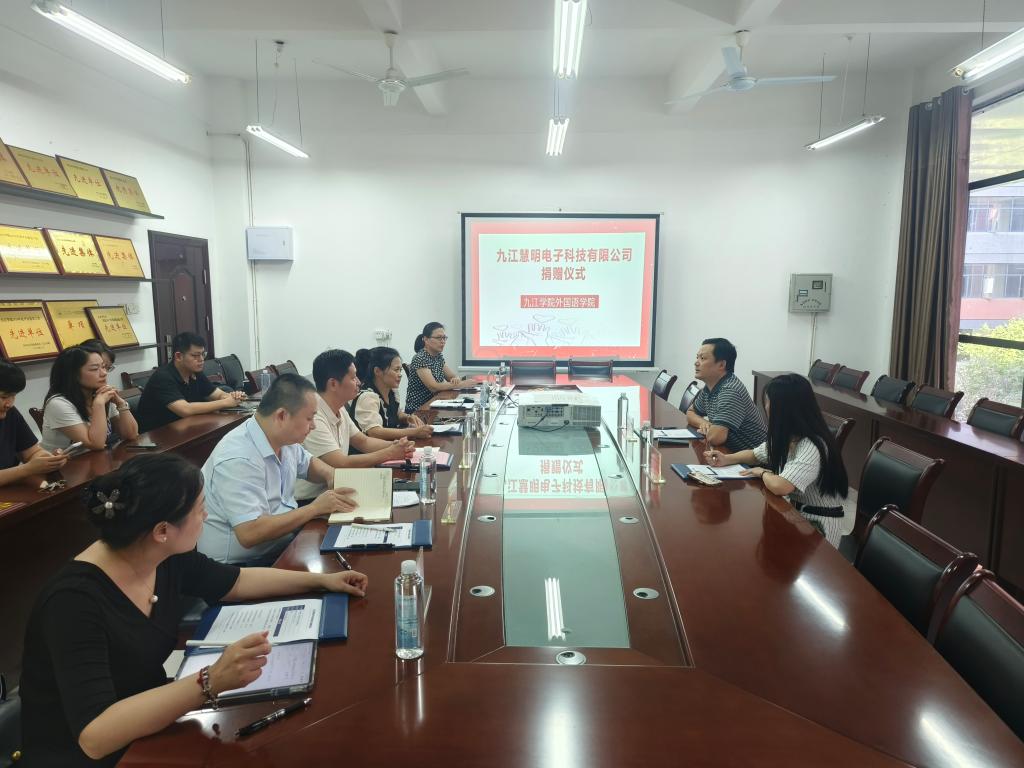 捐赠仪式上,九江慧明电子科技有限公司董事长唐晓明、董事长助理魏小双,以及德赢ac米兰官方合作党政班子、部分教师代表共同出席。