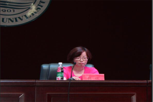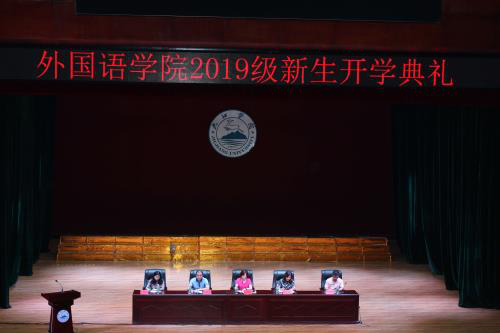 韩琨院长致辞,她对792名新生的到来表示热烈的欢迎和最诚挚的祝福。韩琨院长就德赢ac米兰官方合作的师资力量、专业设置、教科研成果、硬软件设施以及生源结构等基本情况作了简单介绍。韩院长说,德赢ac米兰官方合作是一个充满朝气和希望的学院,长期以来,一代又一代外院人秉着“外显精气神,语藏锦绣文”的院训扎实努力,奋勇拼搏,在外院史册上载下一个又一个辉煌,希望2019级新同学能够顺着学长学姐的脚步,为外院谱写新的篇章。最后,韩琨院长对同学们提出了几点希望:第一希望大家苦练语言基本功,以扎实的外语功底为基础,培养跨文化的深度沟通、交流、合作能力;第二希望同学们多读书,通过广泛的阅读提高思辨能力和国际问题分析能力;第三希望大家先做人再做事,增强明辨是非的能力以及担当意识,做“知礼节,懂规矩,讲文明,有品位”的人;第四希望大家注重身心健康,坚持锻炼身体,造就坚强的意志和宽广的胸怀。