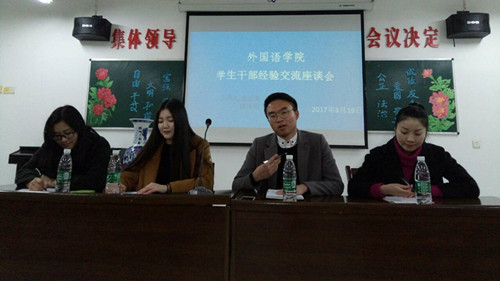 座谈会上,各位高年级学生干部首先向大家讲述了自己大学四年以来在学生会的工作经历以及在工作过程中遇到的各种问题,并且向大家分享了自己的经验。原学生会副主席张云龙同学说到,兴趣是最大的动力,要想做好学生干部工作首先必须要对自己的工作充满热情。原团委副书记张玲玲同学不仅分享了自己在团委的工作经历,还向大家讲述了她作为PUE高级班学员在浙江义乌的实习经历,分享了进入职场后发现的不足。原实践部部长王咏梅同学向大家分享了自己组织活动时的经验教训,也提到了部门开展活动中遇到的问题,提出各部门应互帮互助,团结一致,凝结集体的力量去办好每一件事情。最后,到会的同学踊跃提出问题,学长学姐们细心地为大家解答,在学习以及工作方面都给出了自己的建议。