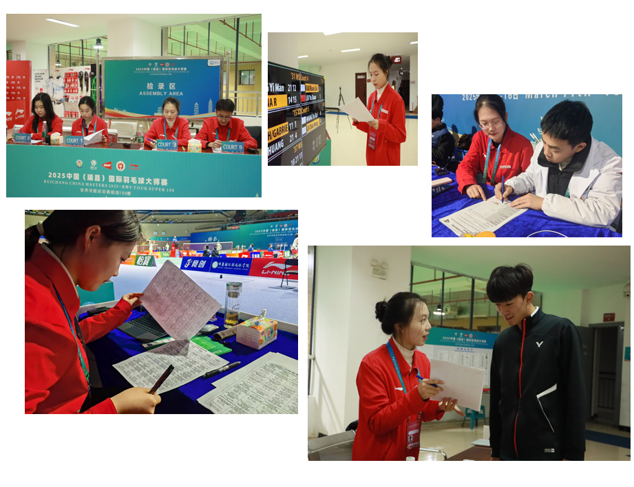 2025年3月11至16日,2025中国(瑞昌)国际羽毛球大师赛在瑞昌隆重举行,德赢官网20名学生组成 “萤火虫” 志愿服务队积极参与赛事服务。他们活跃在赛事多个岗位,充分发挥外语专业优势,在语言翻译、接待指引等工作中,凭借扎实的专业素养,赢得各方赞誉。