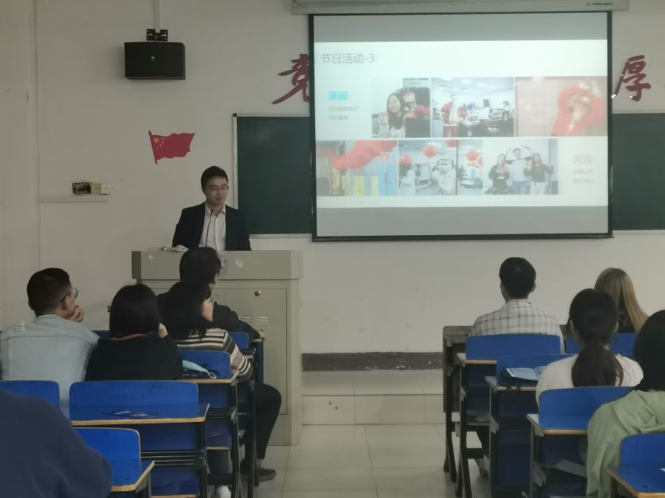 会上,乐其公司人力资源部徐祖元经理为同学们详细介绍了公司情况,内容包括公司发展历程、现有规模、培养计划、员工待遇等,重点强调“用户第一、员工成长、企业发展”的企业宗旨,同时他还介绍了本次招聘的岗位涉及海外电商运营、创意设计、产品研发等多个领域,特别是海外电商运营非常适合德赢官网商务英语专业的同学们对口就业。