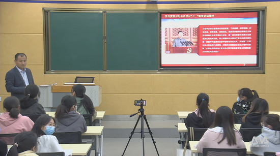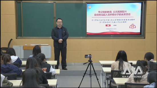 04月28日晚,闫来英同志以《牢记党的教诲立志民族复兴自觉担当起入党积极分子的光荣责任》为题向积极分子讲授党课。他围绕“习近平在中国人民大学考察时的重要讲话精神”“党的十九届六中全会精神”两条主线,结合个人经历、我们所处的时代特征对积极分子进行教诲。引导同学们思考“为什么入党”,带领大家回顾了党的百年奋斗光辉历史,更是教诲同学们要审视当下,立志民族复兴,不负韶华,不负时代,不负人民,在青春的赛道上奋力奔跑,争取跑出当代青年的最好成绩!